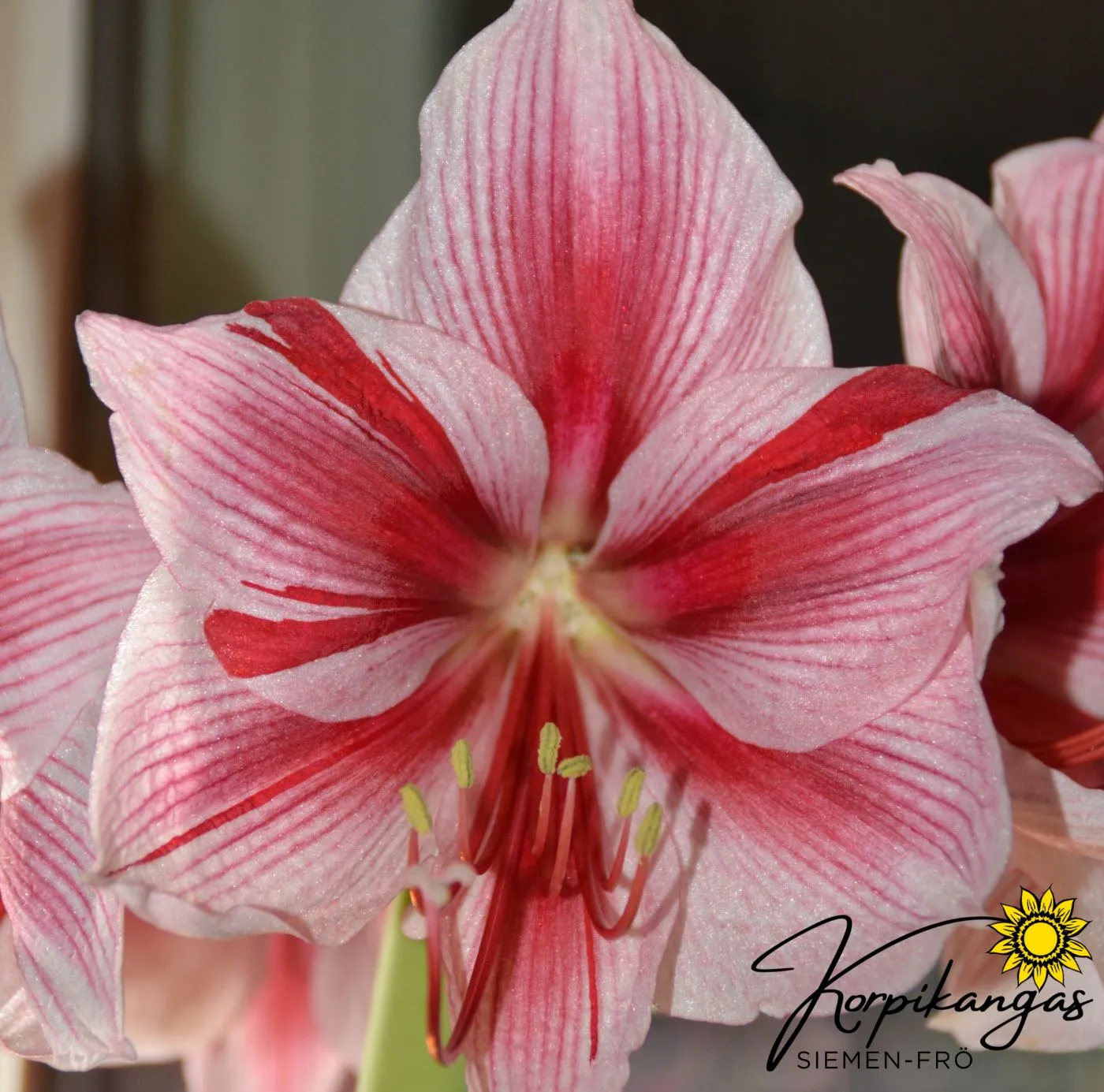 Ritarinkukka. Kaunis vaaleanpunainen kukka, jossa on tyylikkäät punaiset raidat. Runsaskukkainen ja näyttävä lajike, joka sopii joulun koristeluun ja leikkokukaksi.