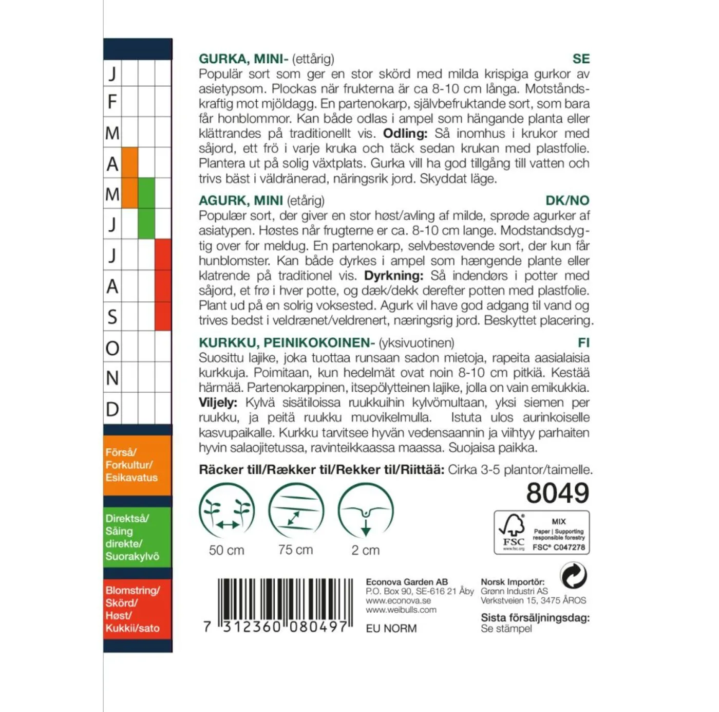 Aasialaistyyppinen minikurkku, jonka hedelmäliha on normaalia kuivempaa, mutta sitäkin maukkaampaa. Sopii amppeliin, mutta voidaan myös sitoa. Ei kaipaa pölytystä. Älä anna kurkkujen kasvaa liian suuriksi. Korjaa satoa vähitellen ja syö tuoreena.