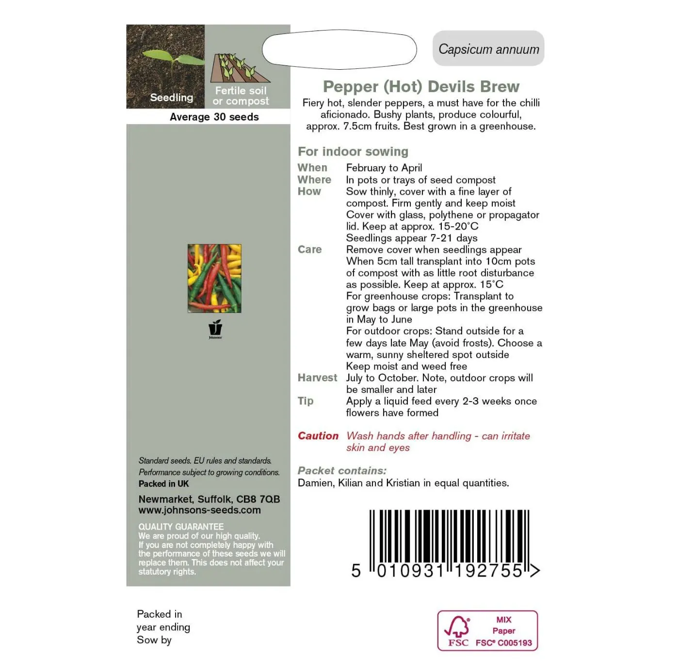 ‘Devil’s Brew’ on erittäin tulinen ja aromaattinen chililajike, joka tuottaa runsaasti pieniä, pitkänomaisia hedelmiä. Hedelmät kypsyvät vihreästä kirkkaan punaiseen ja tulisuus on 50 000–100 000 Scovillea, joten se sopii tulisuuden ystäville ruoanlaittoon, kastikkeisiin ja säilöntään. Kompaktin ja tiiviin kasvutavan ansiosta se sopii hyvin myös ruukku- ja parvekeviljelyyn.