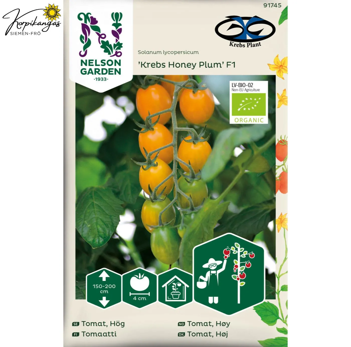 Luomulaatuinen siemen. Kaunis oranssi ja aromaattinen luumutomaatti, runsaasti makeutta. Kastele säännöllisesti. Poista "varkaat" eli ylimääräiset versot.