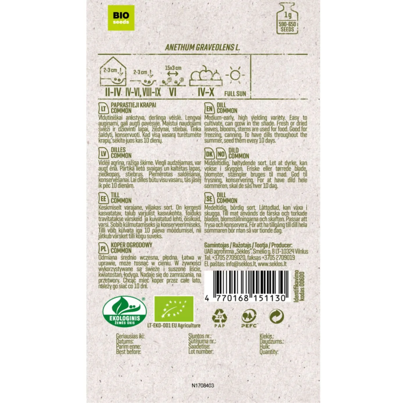 Vanlig dill med aromatisk och frisk smak, mångsidig i köket. Dill är en känd kompanjonväxt som skyddar särskilt kålväxter och attraherar nyttodjur i trädgården.