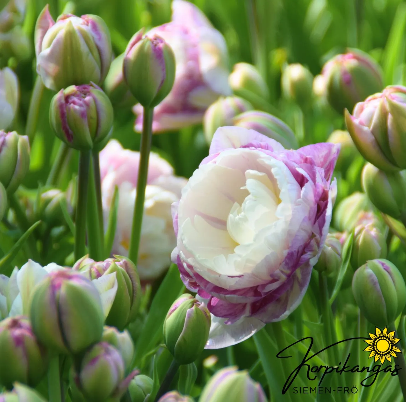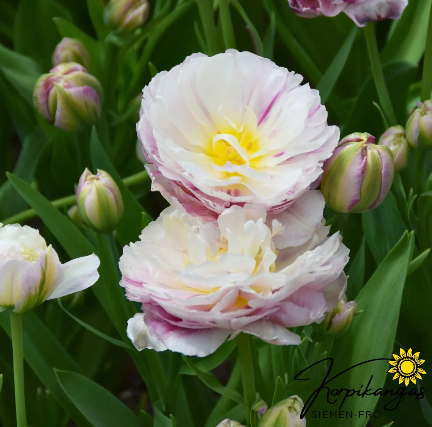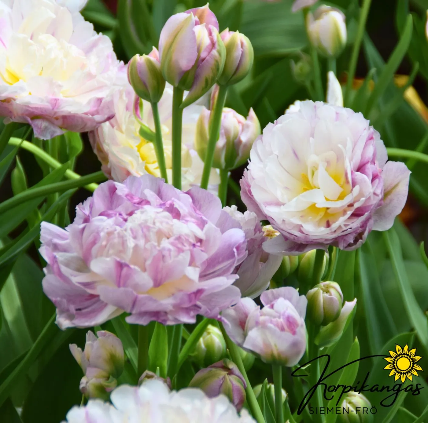 Ihastuttava monikukkainen ja kerrottu tulppaani, jonka kukat nousevat esiin ryppäinä yhdestä varresta. Kukkien sävyt vaihtelevat vaaleanpunaisesta syvempään roosaan, ja ne tuovat pehmeyttä ja näyttävyyttä kevätpenkkiin. Sopii hyvin myös ruukkuihin ja leikkokukaksi.