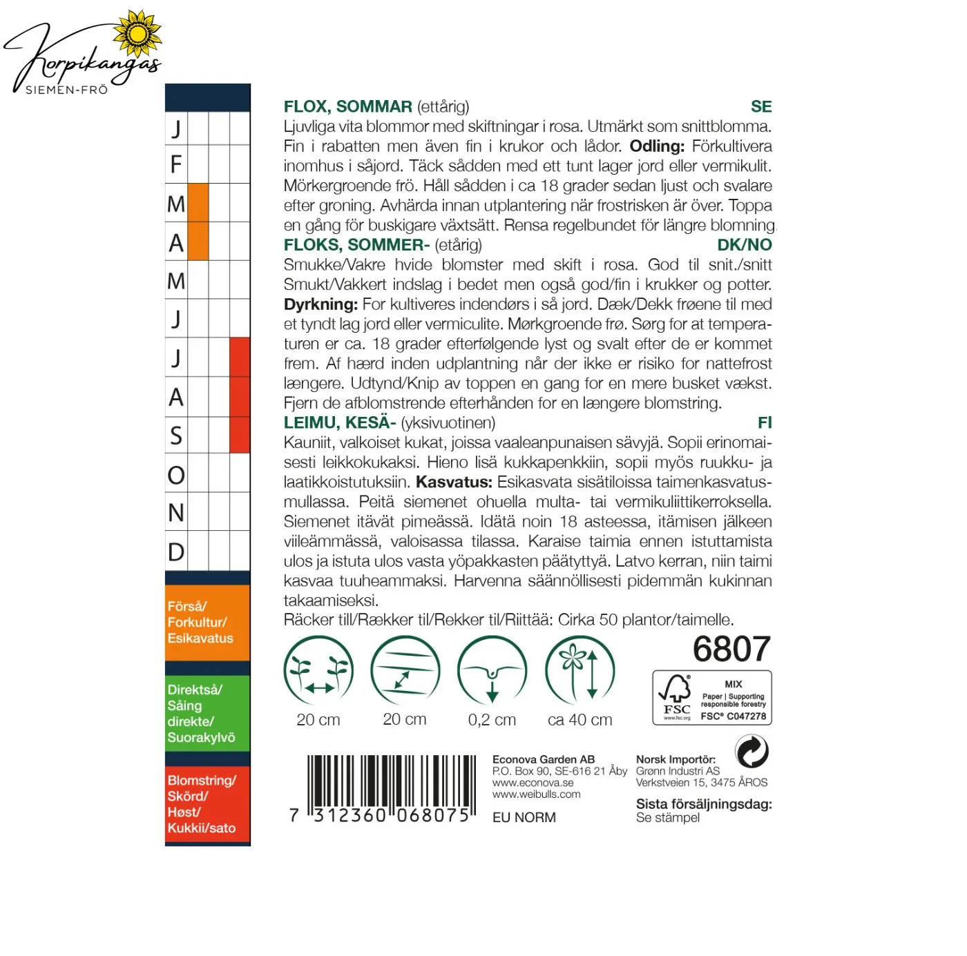 Romanttiset valkoiset kukinnot, joissa on vaaleanpunaista sävyä. Soveltuu erinomaisesti leikkokukaksi. Runsaskukkainen yksivuotinen kasvi, lyhyt esikasvatus. Kauniit siniset sävyt. Helppo viljellä, sopii myös ruukkuihin.