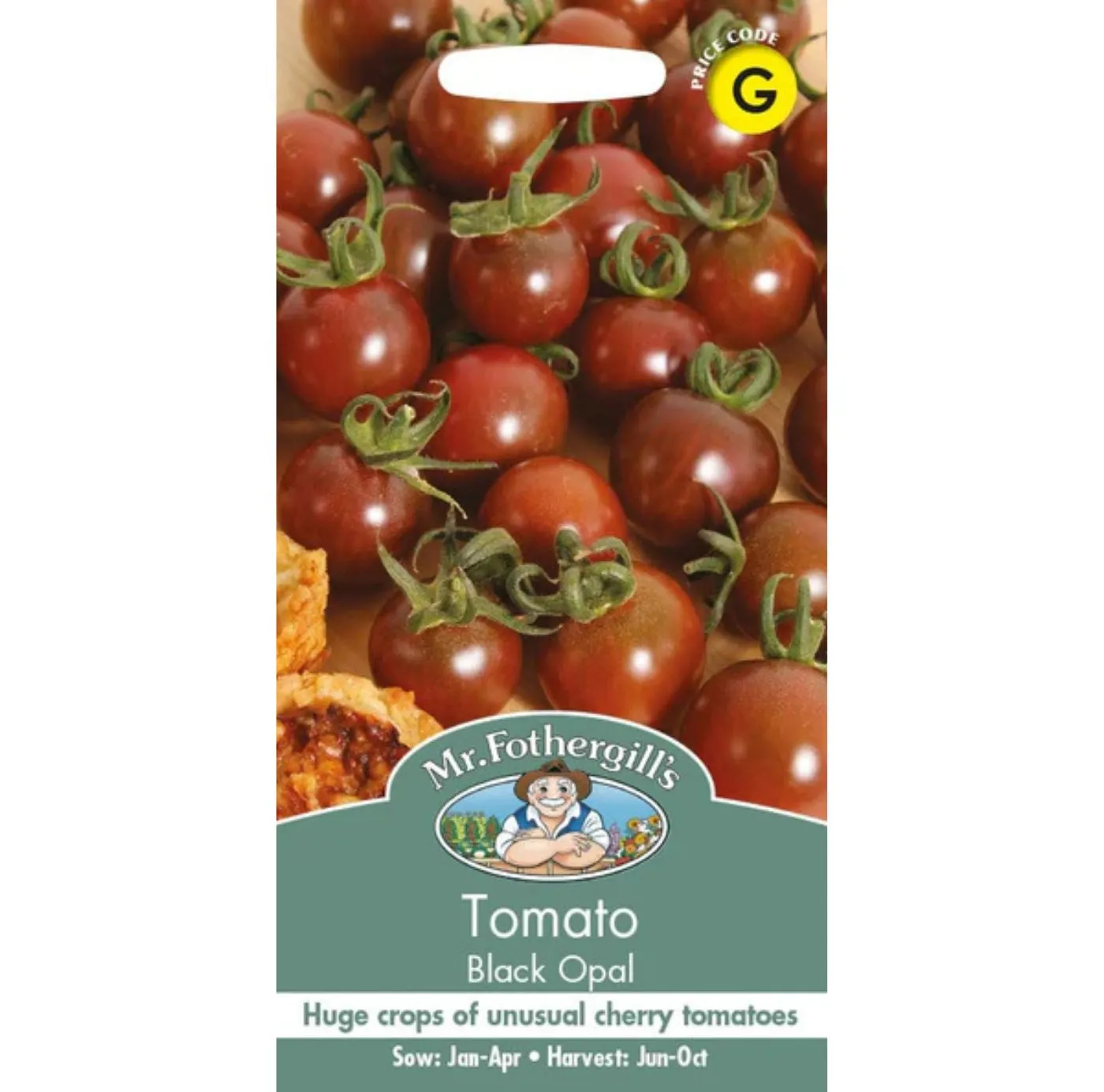 Määrä: 15 siementä‘Black Opal’ on jalostettu perinteisestä ‘Black Cherry’ -lajikkeesta, mutta siinä on parannettu kasvutapa, kiinteämpi hedelmäliha ja makeampi maku. Kasvi tuottaa pitkiä, runsashaaraisia terttuja, joissa on jopa 12 pientä, 20–30 g painoista tomaattia. Voi tuottaa 150-200 tomaattia kasvukauden aikana. Hedelmän väri on tumman suklaanruskea, ja sen maku on täyteläinen ja aromikas – erinomainen sekä tuoreena että kypsennettynä.