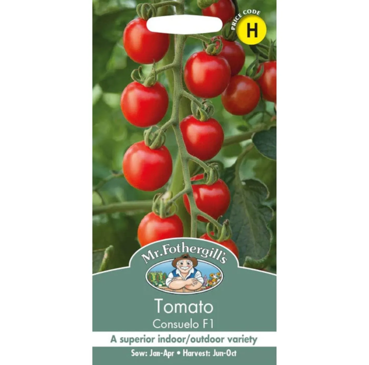 ‘Consuelo’ on varhainen ja erittäin satoisa F1-hybridi kirsikkatomaatti, joka tuottaa pitkissä tertuissa runsaasti tasaisen pyöreitä, kirkkaanpunaisia ja mehukkaita hedelmiä. Jokainen tomaatti painaa noin 15–20 g, ja yhdestä kasvista voi saada jopa 150 hedelmää kasvukauden aikana.