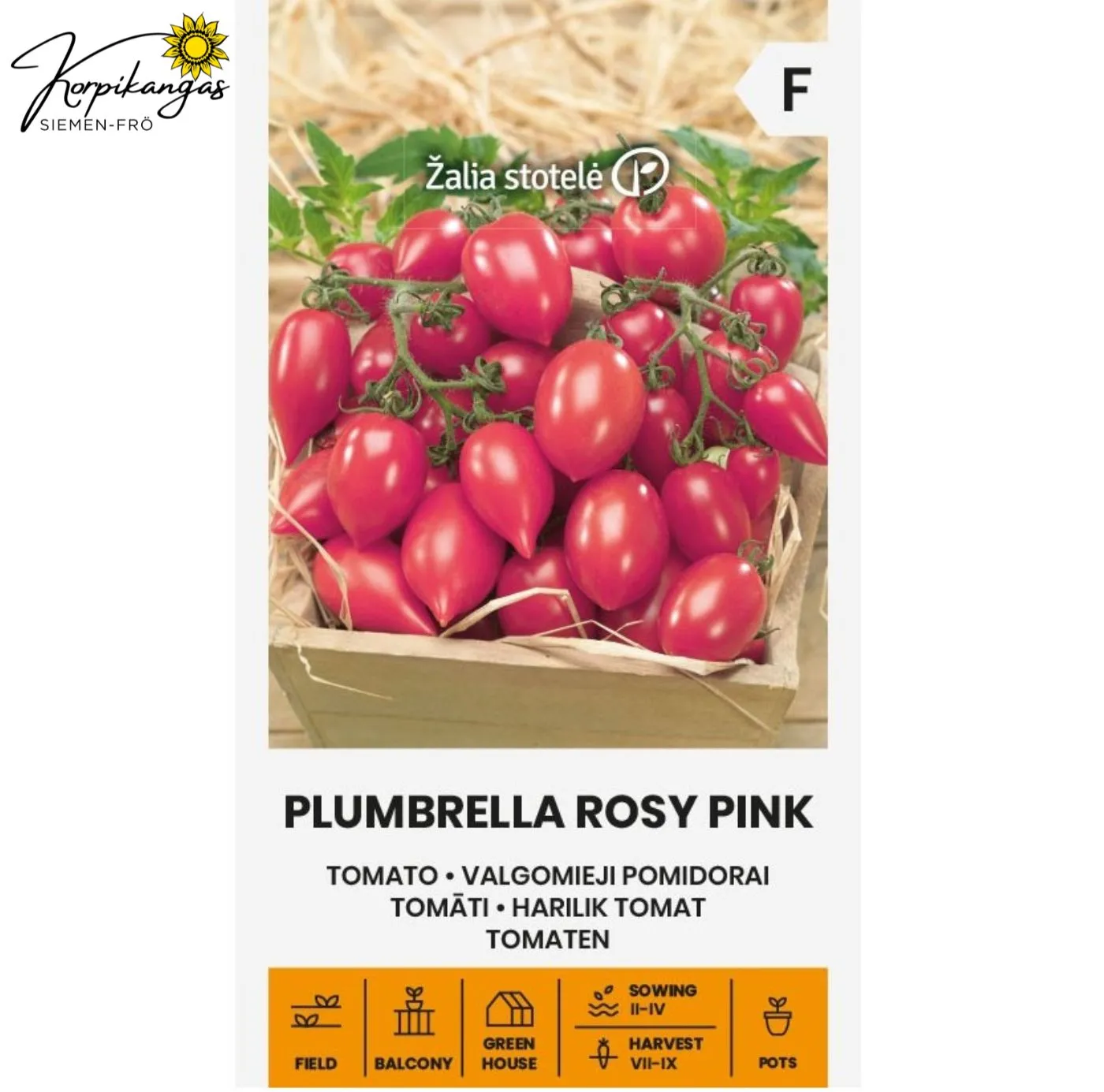 Määrä: 5 siementäVarhainen, runsassatoinen ja pienikukkainen kääpiölajike, microtomaatti. Lajikkeen erityispiirre on, että tomaatit kasvavat lehtien yläpuolella muodostaen sateenvarjon, eikä sitomista tai karsimista tarvita. Hedelmät ovat pieniä, kirsikankaltaisia, herkullisia ja makeita, kärjestään teräviä, ja painavat noin 20 g. Näitä tomaatteja voi nauttia tuoreina tai säilöttynä. Lajike on tarkoitettu kasvatettavaksi ruukuissa terassilla tai parvekkeella.