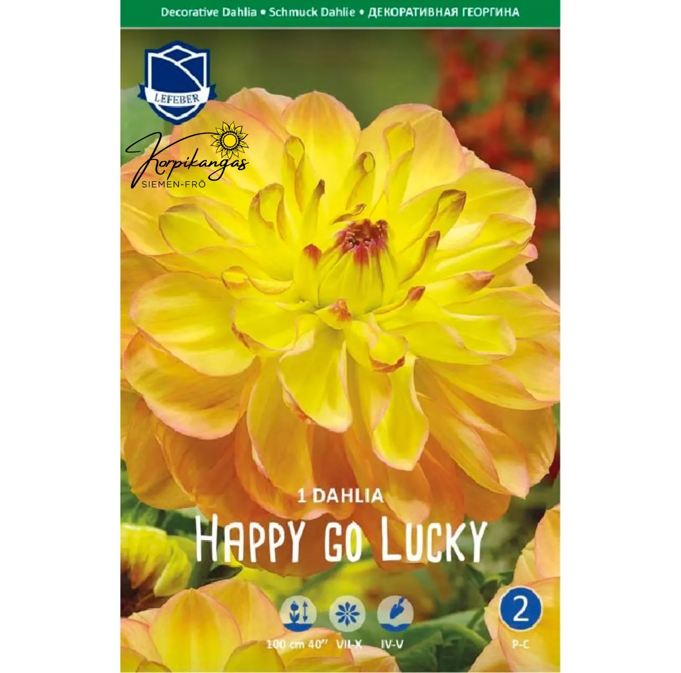 Ihastuttava ja raikas daalia, joka hurmaa suurilla keltaisen ja persikan sävyisillä kukillaan. Terälehtien pehmeän punaiset kärjet tuovat kukintaan eloisaa kontrastia ja lämpöä. Lajike on näyttävä katseenvangitsija kukkapenkissä ja sopii erinomaisesti myös leikkokukaksi.