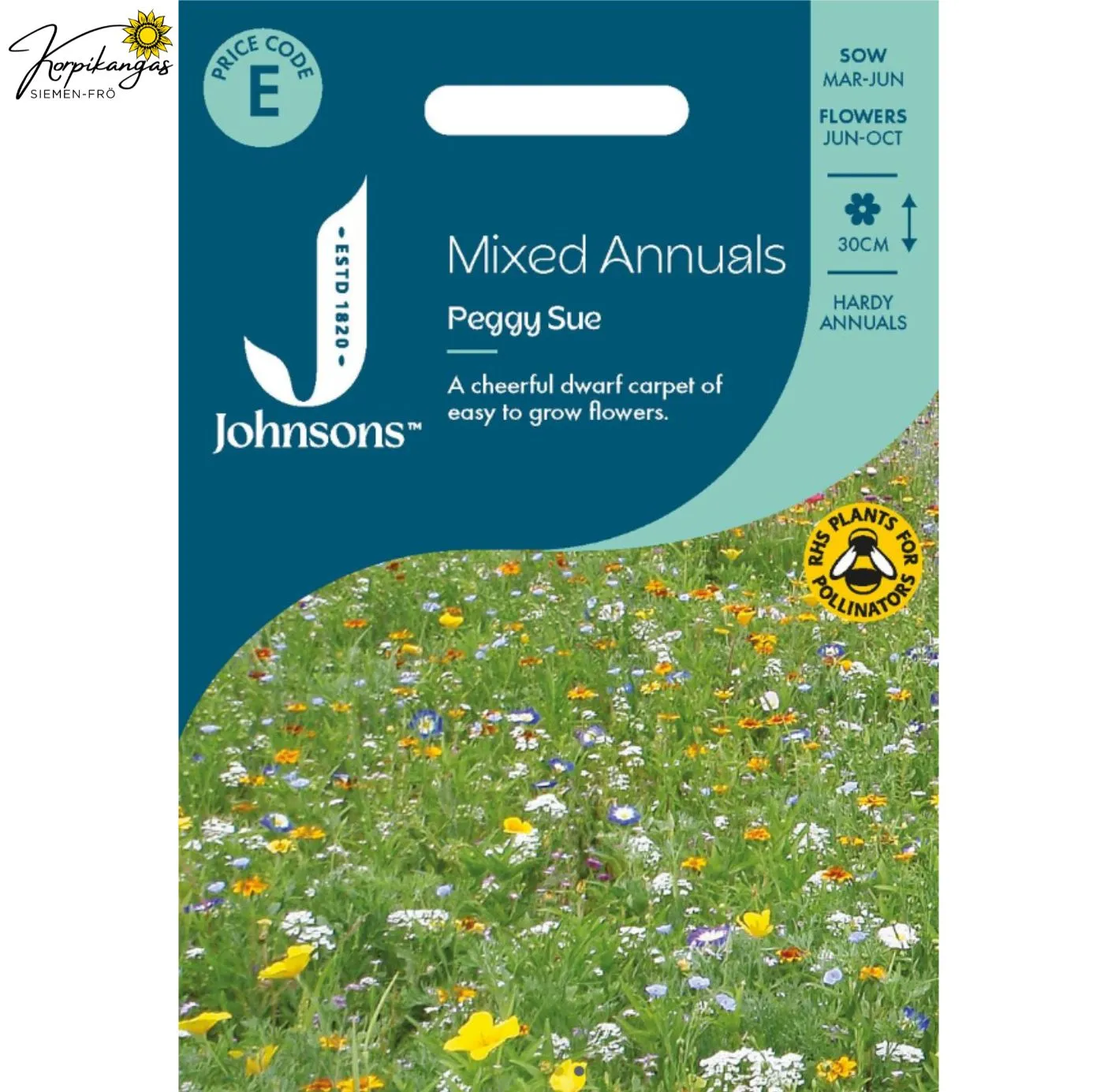 Matala iloinen värisekoitus kuivaan paikkaan. Yksivuotinen. Yksi pakkaus riittää noin 2 m2.