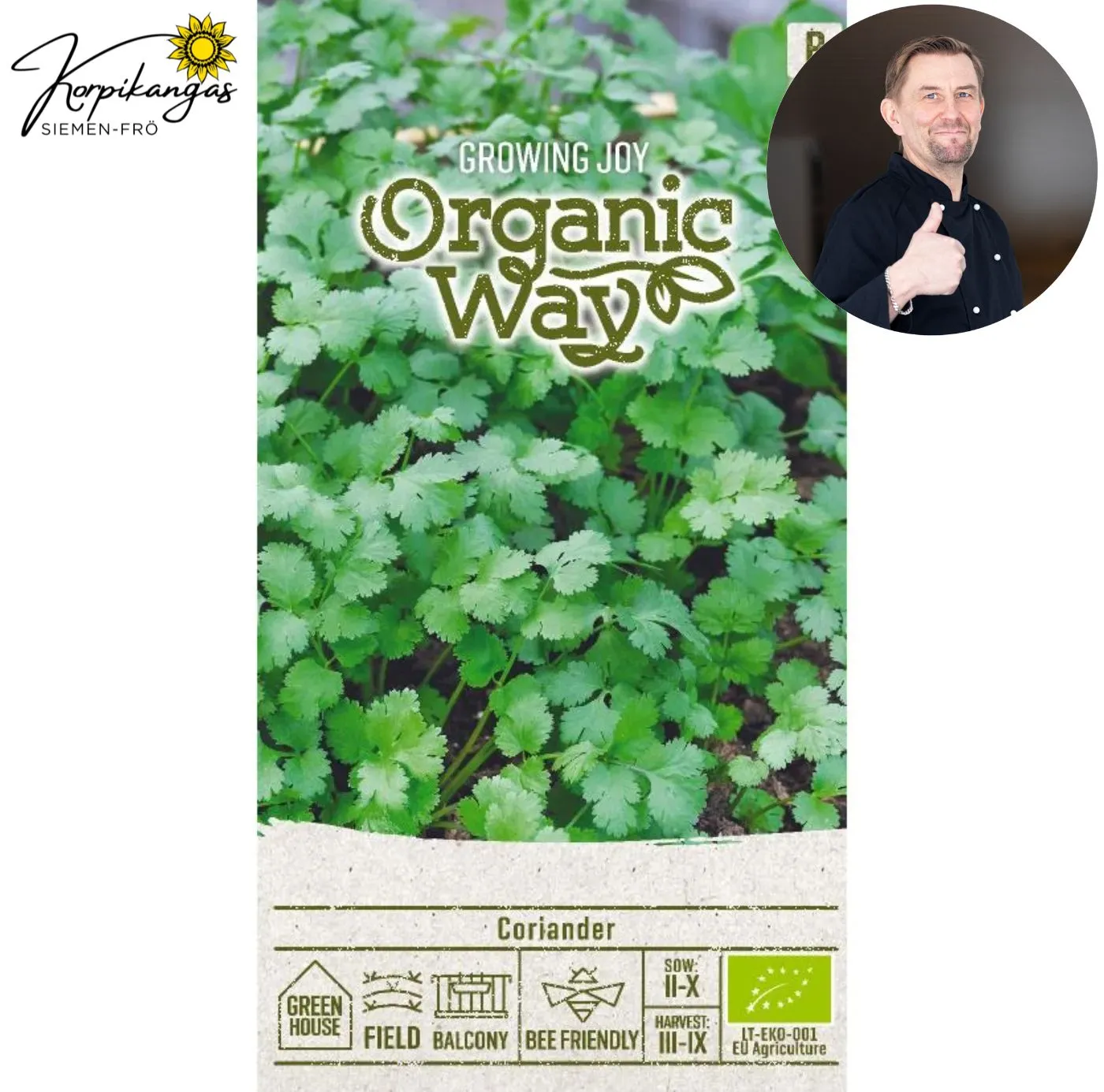 Antal: 300 siementäKoriander är en aromatisk flerårig ört, som oftast odlas ettårig. Dess färska blad används i sallader, curryrätter och andra indiska och sydländska maträtter. Koriander är lättodlad från frö och passar både för direktsådd och förkultivering. Sådd bör göras tidigt på våren i april–maj, när jorden är bearbetningsbar och frostfri. Höstsådd är också möjlig, men groningen kan bli mer osäker.