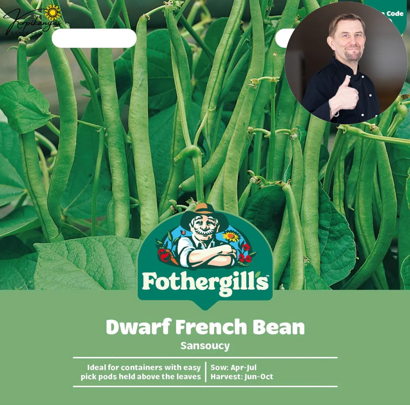 Määrä: 100 siementäVihreät palot kasvavat lehtien yläpuolella. Pitkä satokausi, myös ruukkuun.