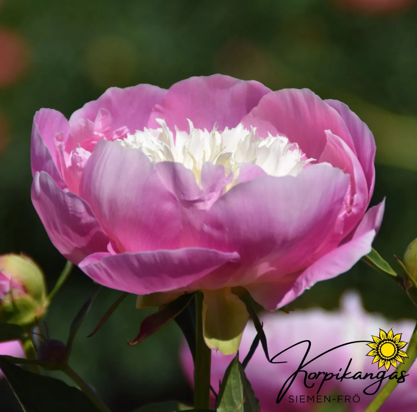 Paeonia ‘Gay Paree’ on poikkeuksellisen näyttävä ja persoonallinen pioni, joka tunnetaan suurista, puolikerrotuista kukistaan. Kukat ovat väritykseltään vaihtelevia: pääosin vaaleanpunaisen ja valkoisen sävyjä, joissa voi esiintyä yksilöllisiä raitoja ja väriläiskiä, mikä tekee jokaisesta kukasta hieman erilaisen. Tämä ainutlaatuinen ulkonäkö tekee lajikkeesta todellisen katseenvangitsijan alkukesän kukintaan. Pioni sopii erinomaisesti perennapenkkiin yksittäiskasviksi tai ryhmiin, ja se on myös upea leikkokukka.
