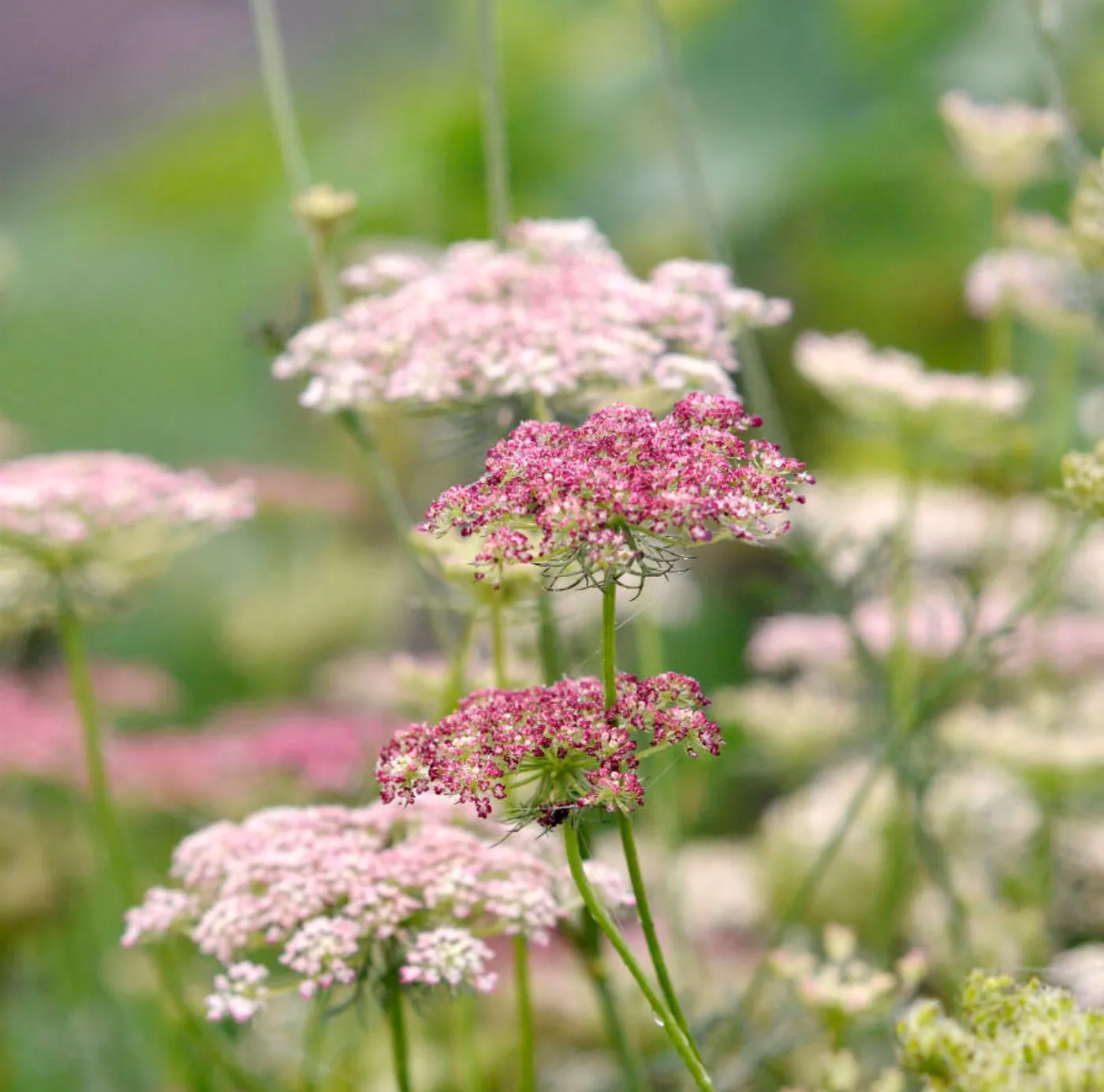 Kauniit, harsomaiset kukat roosan, purppuran ja valkoisen sävyissä luovat kauniin kukkapenkin. Sopii täytteeksi kimppuihin.