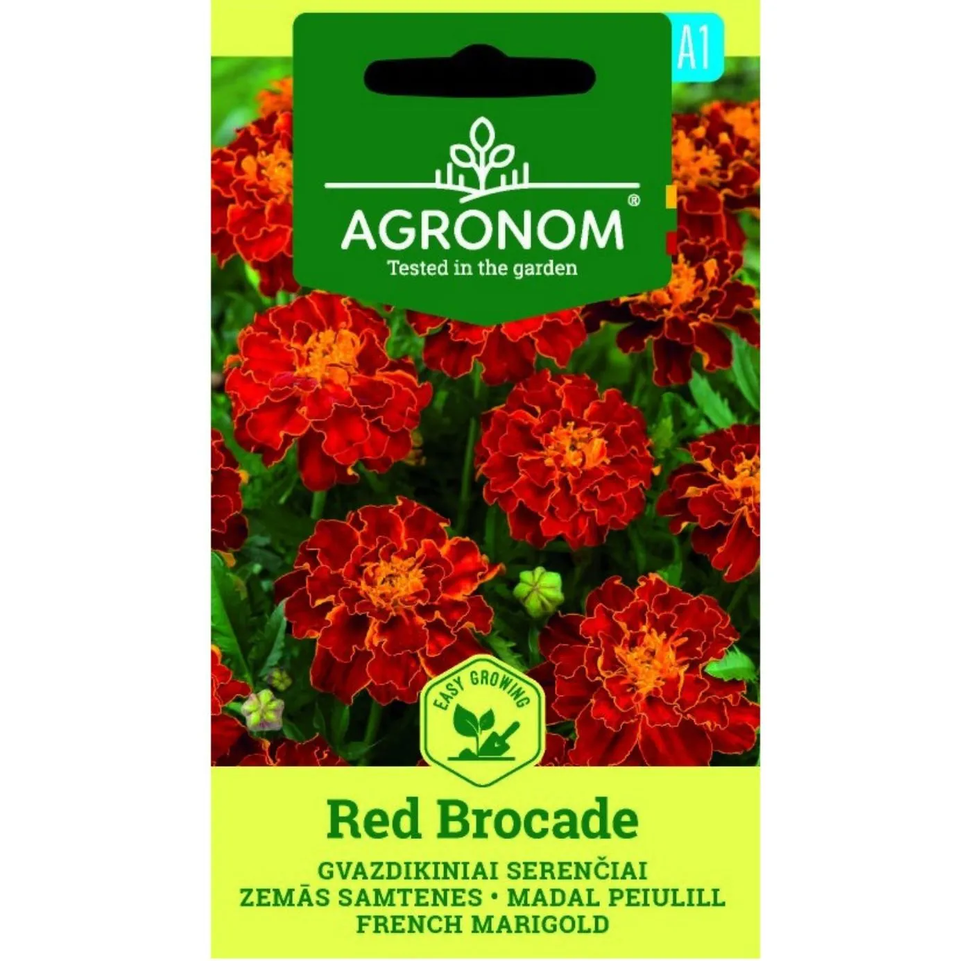 Tagetes (samettikukka) Red Brocade on helposti viljeltävä yksivuotinen koristekasvi, joka ilahduttaa näyttävillä, suurilla kerrotuilla kukillaan läpi kesän. Kukat ovat 5–6 cm halkaisijaltaan, värikkäitä ja huomion herättäviä, sopivat erinomaisesti istutettavaksi ruukkuihin, kukkapenkkeihin, hautausmaille tai amppeleihin. Laji on vaatimaton maaperän suhteen ja helppohoitoinen, ja kukinta jatkuu parhaiten, kun kuihtuneet kukat poistetaan säännöllisesti. Peurat eivät syö tätä lajiketta, joten se on turvallinen valinta myös eläinten suosimille alueille.