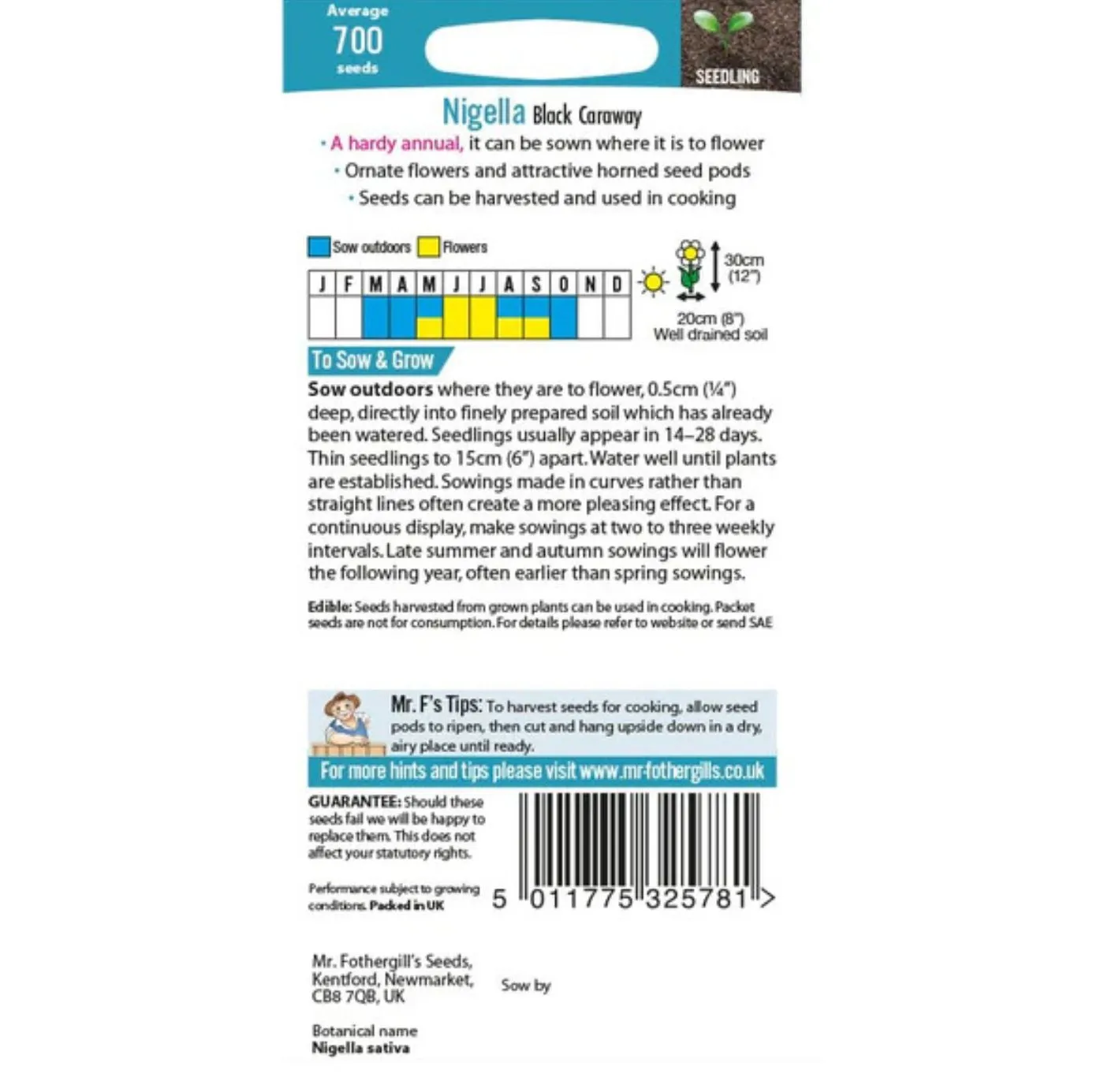 Tarhaneito 'Black Caraway' on kiehtova yksivuotinen kasvi, joka tunnetaan ainutlaatuisesta ulkonäöstään ja monipuolisesta käytöstään keittiössä. Tämä hentoinen kasvi tuottaa monimutkaisia, ilmavia kukkia, yleensä sinisen, valkoisen tai vaaleanpunaisen sävyissä, joita seuraavat usein tunnusomaiset siemenkotat, jotka lisäävät puutarhaan rakenteellista kiinnostavuutta. Hienojakoinen, höyhenmäinen lehvästö luo pehmeän taustan, joka korostaa kukkien visuaalista viehätystä. Kasvi viihtyy aurinkoisella kasvupaikalla ja hyvin vettä läpäisevässä maassa, ja se on erittäin helppo kasvattaa. Tämä tekee siitä erinomaisen valinnan perennapenkkeihin, cottage garden -tyyliin tai hurmaavaksi täytekasviksi leikkokukka-asetelmiin. Siemenet, jotka tunnetaan aromaattisista ominaisuuksistaan, ovat arvokas lisä erilaisiin ruokiin.